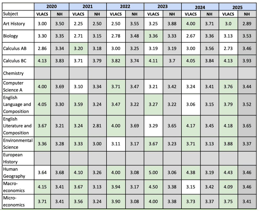 | VLACS Avg. ’25 | NH Avg ’25 | |